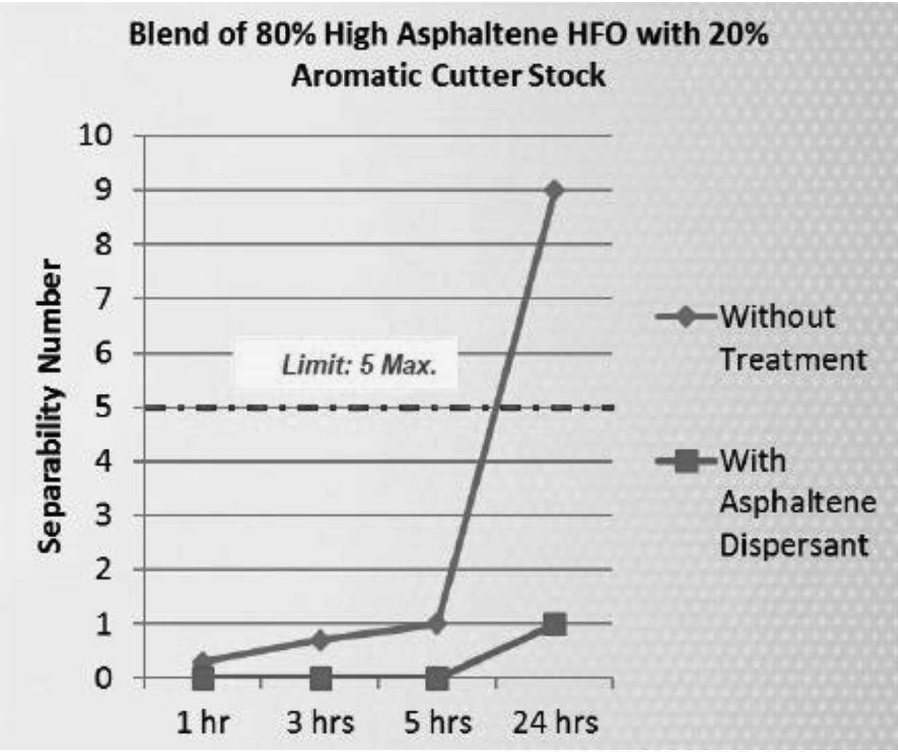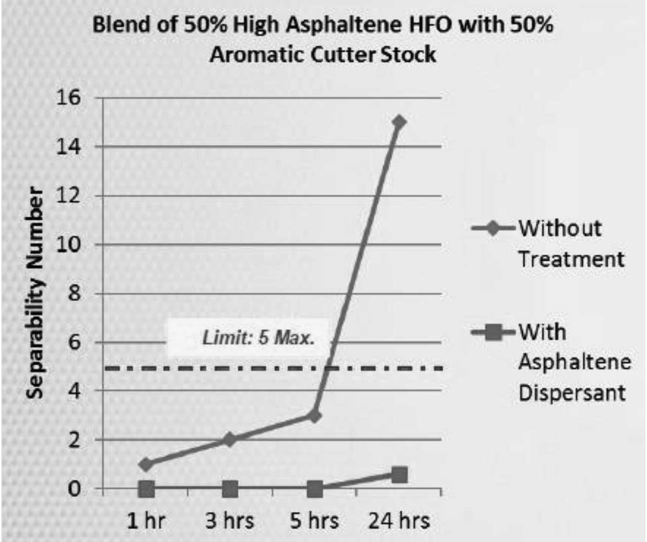 Keeps asphaltenes dispersed, reducing risk of fuel stratification and incompatibility.
